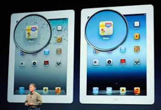 Perbandingan tampilan layar iPad 2 (kiri) dan iPad baru dengan layar Retina (kanan), (dok. Getty Images) |