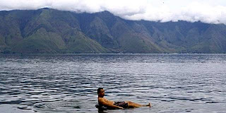 di pinggang, lalu mengambanglah dengan santai di atas Danau Toba. Tak perlu