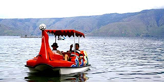 KOMPAS IMAGES/NI LUH MADE PERTIWI F Naik bebek-bebekan keliling Danau Toba di Pantai Pasir Putih, Samosir, Sumatera Utara. |